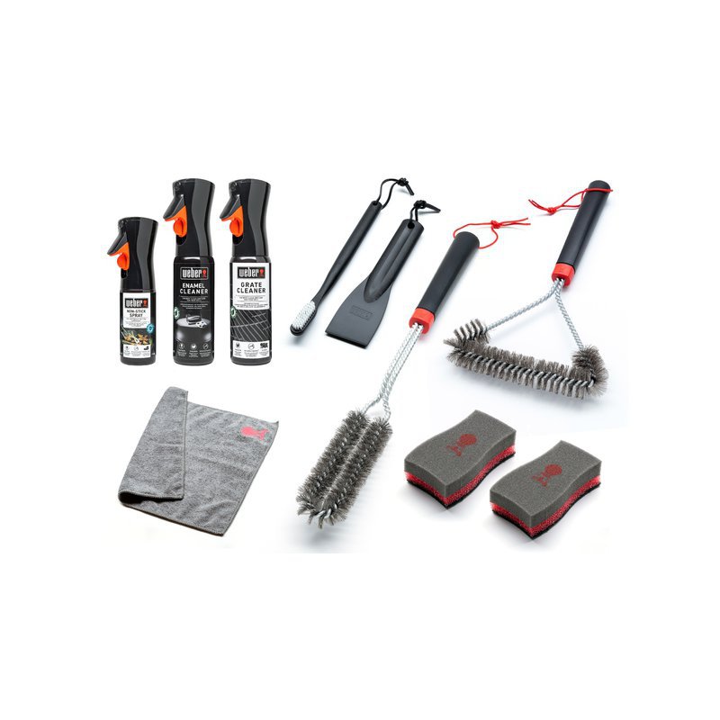 Obsahom tejto sady je – vrátane účinnej kefy, kefa na detailné čistenie roštu, čistič na rošty, čistič na smalt, špongia, škrabka na gril, handrička, kefa na čistenie horákov a neprilnavý olej.