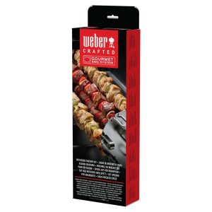 Jednoducho zasuňte súpravu ihlíc pre rotesériu WEBER CRAFTED do rotesérie na svojom grile a môžete si pripraviť rovnomerne prepečený kebab z kuracieho mäsa, krevety, zeleninu alebo ovocie. Používa sa s rotesériou v grile.